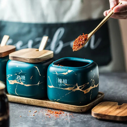 Alabaster Spice Vault - Marbled Ceramic Seasoning Jar