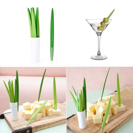 BambooBite Mini Set - Creative 10pcs/Set Green Bamboo Leaf Fruit Fork/Cocktail Fork