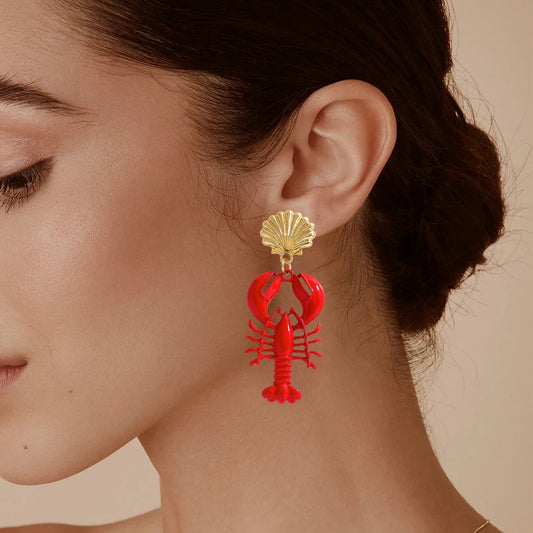 Seaside Lobster Earrings - Red Bake Paint Lobster Shell Dangle Earrings Jewelry Accessories