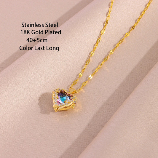 Neptune’s Heart Collection - Colorful Zircon Crystal Ocean Heart Pendant Necklaces, Earrings and Ring Set