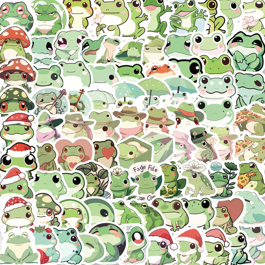 LilyPad Laughs - 100PCS Cute Cartoon Frog Stickers Great for Handbooks Phone Cases Laptop Suitcases Water Cups Waterproof Stickers